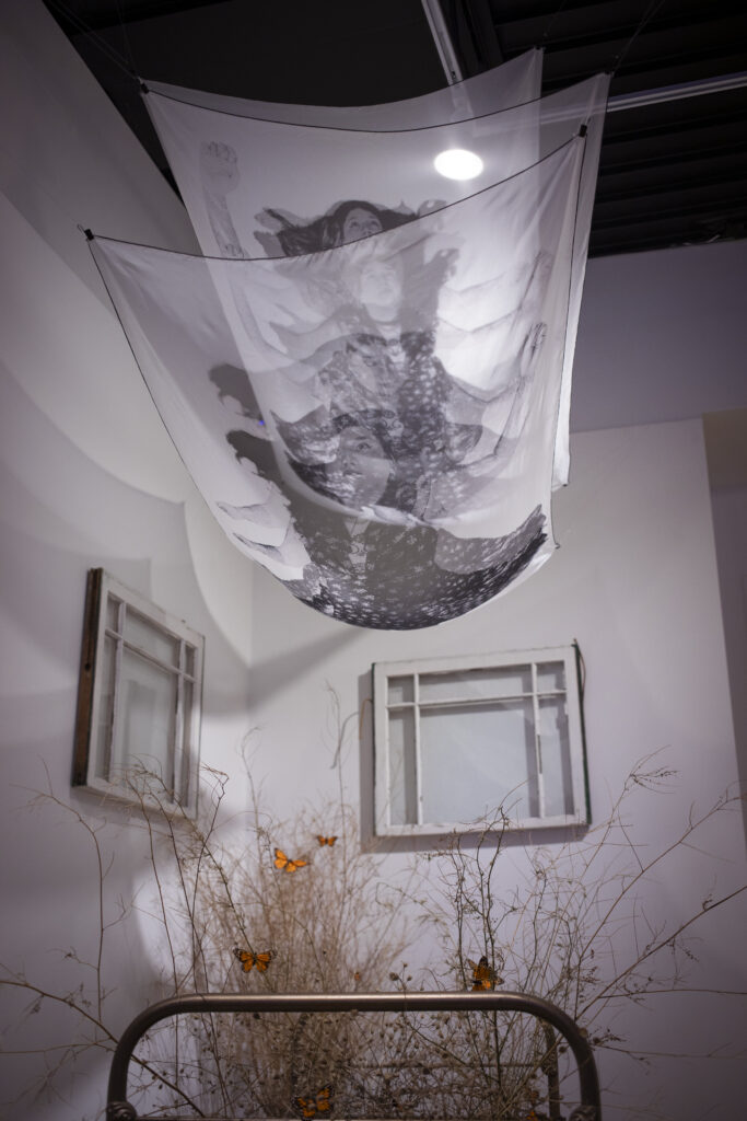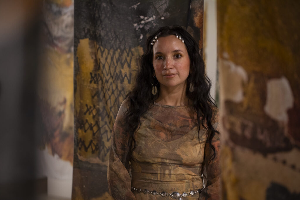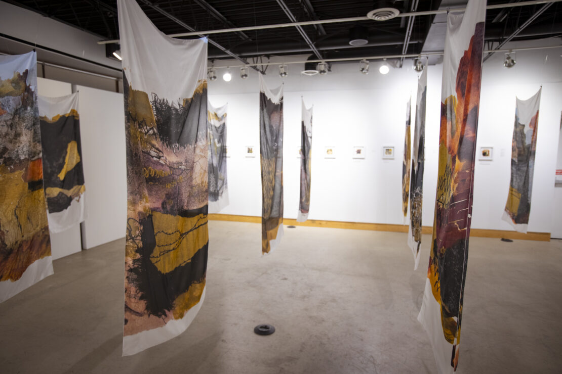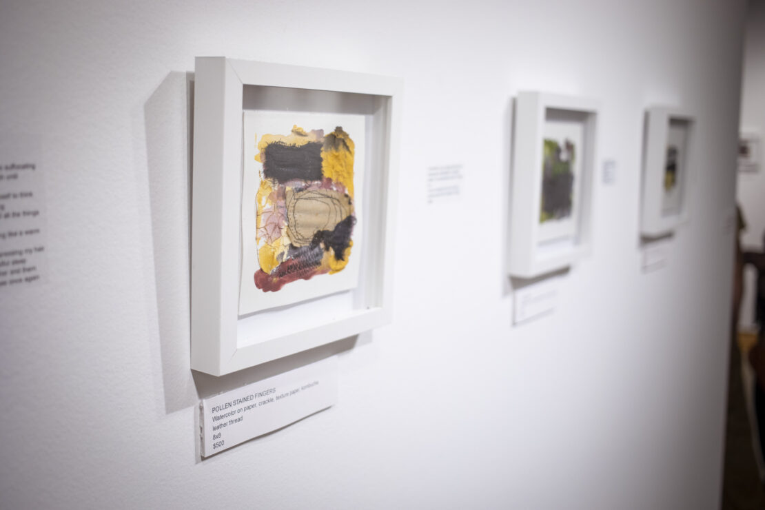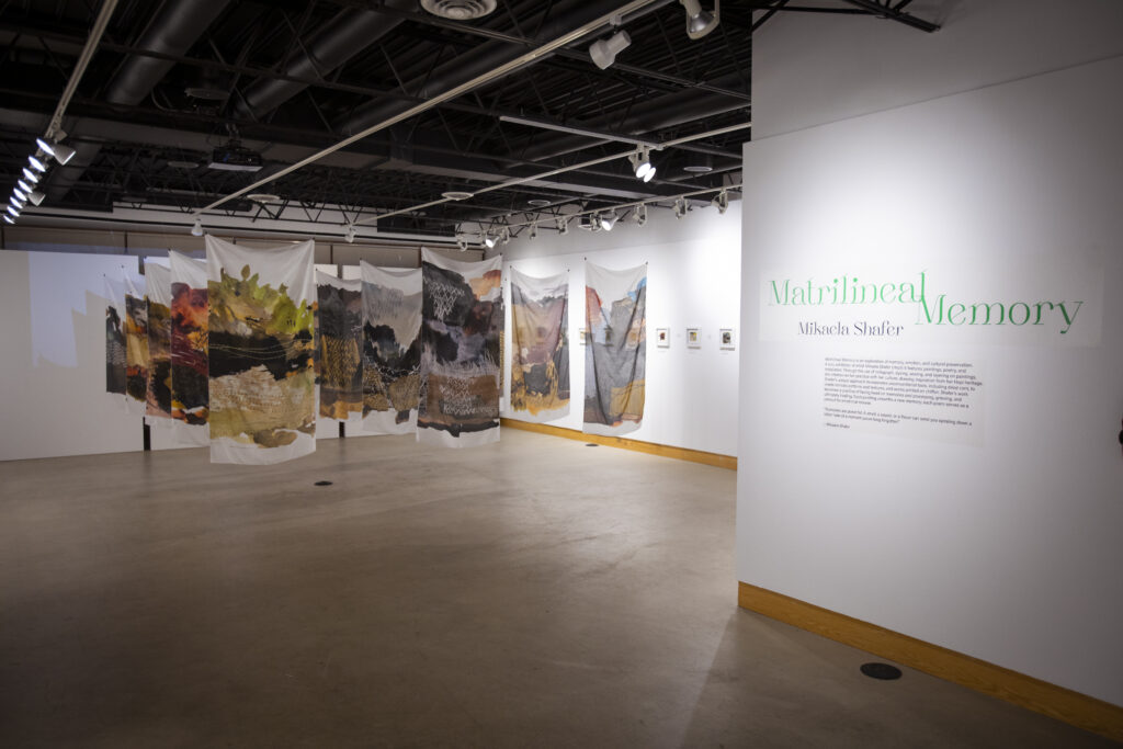 Matrilineal Memory is an exploration of memory, emotion, and cultural preservation. A solo exhibition of artist Mikaela Shafer (Hopi), it features paintings, poetry, and installation. Through the use of collagraph, dyeing, sewing, and layering on paintings, she intertwines her practice with her culture, drawing inspiration from her Hopi heritage. Shafer’s unique approach incorporates unconventional tools, including dried corn, creating intricate patterns and textures, including works printed on chiffon. Shafer’s work becomes a practice of facing head on memories and processing, grieving, and ultimately healing. Each painting unearths a new memory; each poem serves as a conduit for emotional release.
